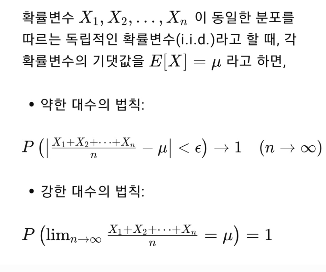 **대수의 법칙(Law of Large Numbers, LLN)**은 확률론에서 중요한 정리 중 하나로, 표본 크기가 커질수록 표본 평균이 모집단의 기댓값(평균)에 가까워진다는 원리입니다.